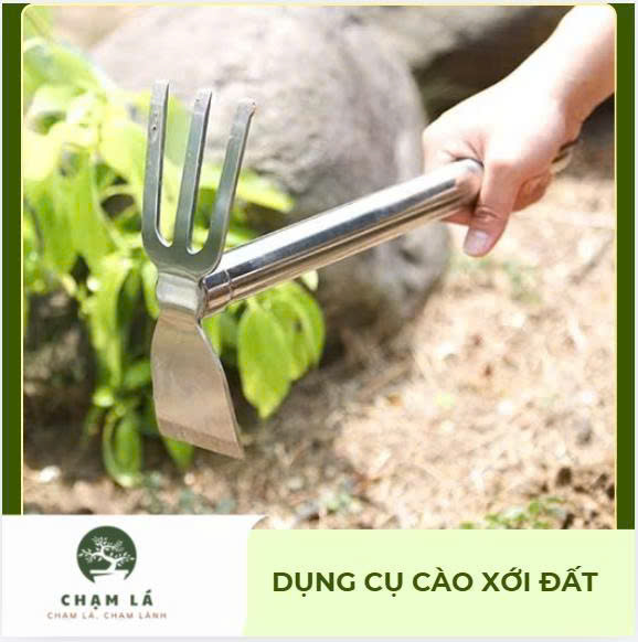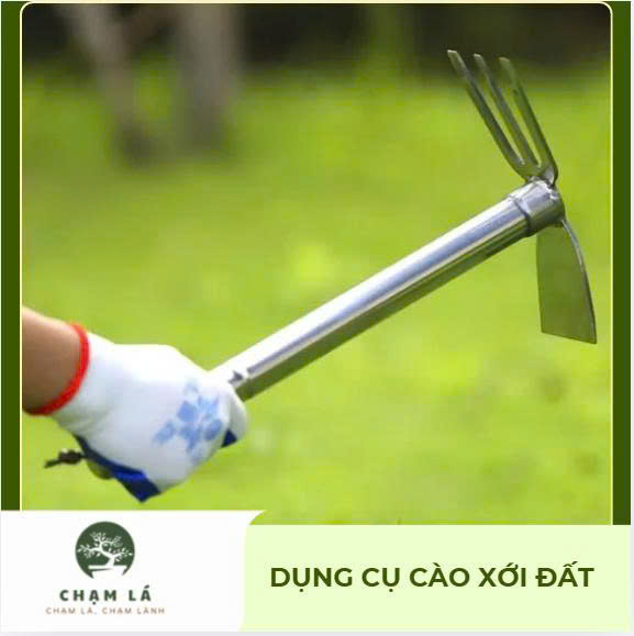 - Sử dụng đầu cuốc để xới đất cứng, sau đó dùng răng cào để làm tơi và san phẳng bề mặt.
